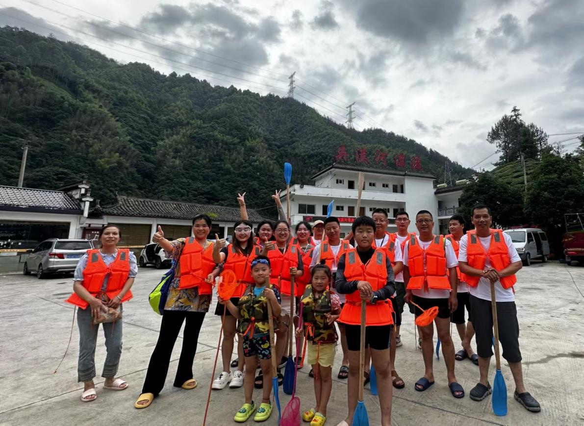 一只小小的橡皮艇,順?biāo)?,時而驚險刺激,時而碧波潺潺,兩岸是青山綠水,鳥語花香,身上是清涼透徹的溪水,將工作的疲憊與生活的煩悶一消而散,暢快淋漓。漂流的同時大家還準(zhǔn)備了水槍、水瓢等打水仗的工具,大家在水上盡情的釋放壓力,感受最純粹的快樂。